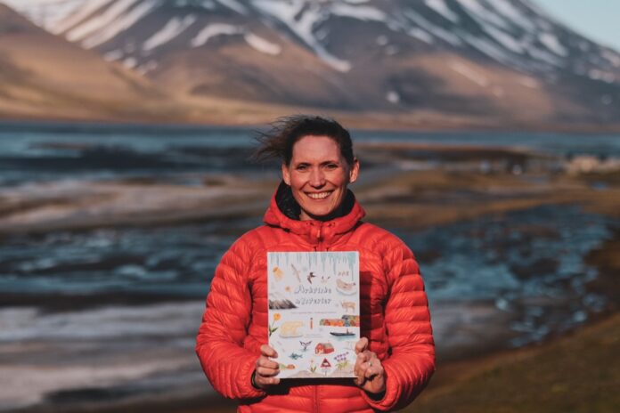 Maria Philippa Rossi med Arktiske mysterier, en barnebok som gjør Svalbards forskning tilgjengelig for unge nysgjerrige. Foto: Privat