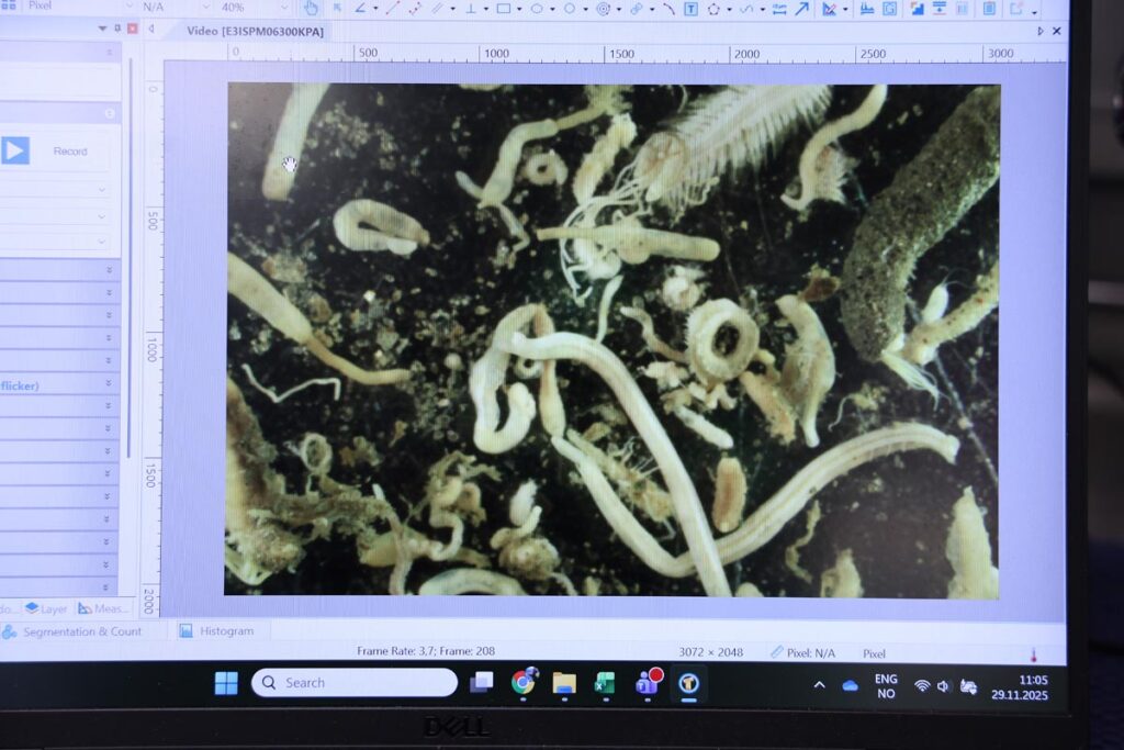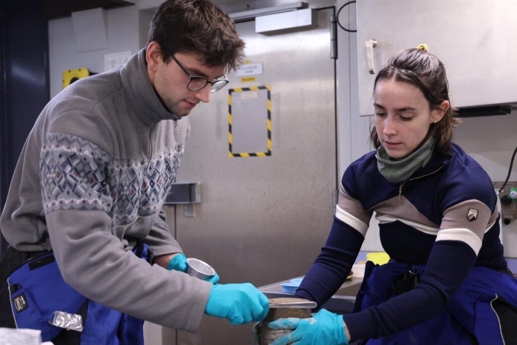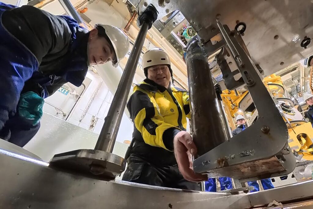 De første prøvene fra multikoreren kom raskt opp på dekk. Kjernene med havbunnssedimenter skal gjennom eDNA-analyse, som gjør det mulig å oppdage spor av arter gjennom genetisk materiale de har etterlatt. I tillegg skal prøvene undersøkes for mulig langtransportert forurensning.