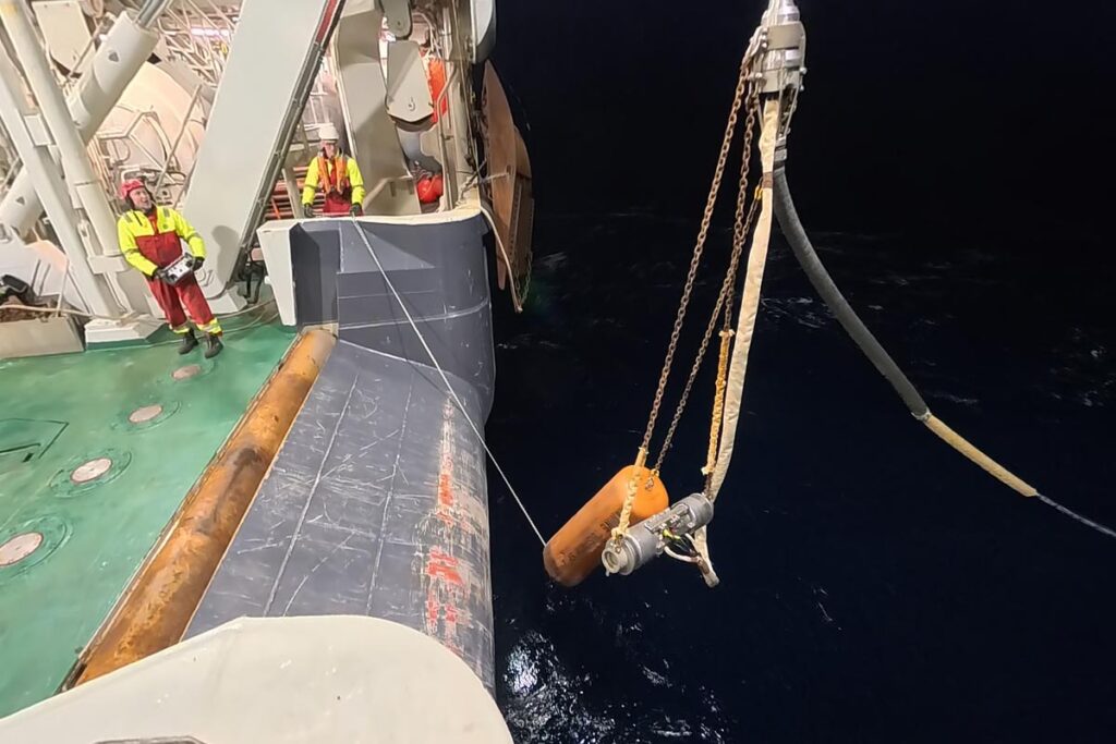 Utsetting av luftkanonen. Foto: Daniel Albert, GoNorth/SINTEF