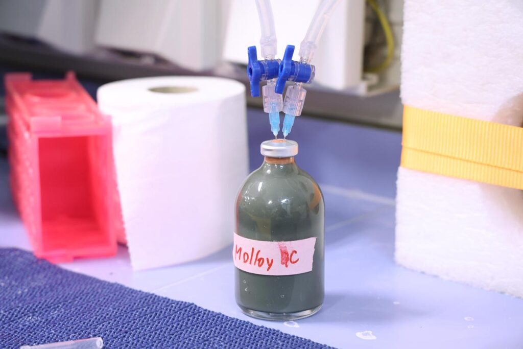 Tidligere på toktet tok Alexander Minakov (UiO) en delprøve fra nederst i en gravity-core kjerne. Denne har han tatt med til skipets laboratorium for å gjennomføre gassanalyser. Hypotesen er at prøven hovedsakelig består av metan, hydrogen, og hydrogensulfid. Kunnskap om typen gasser kan hjelpe forskerne med å tolke annen data i omådet.