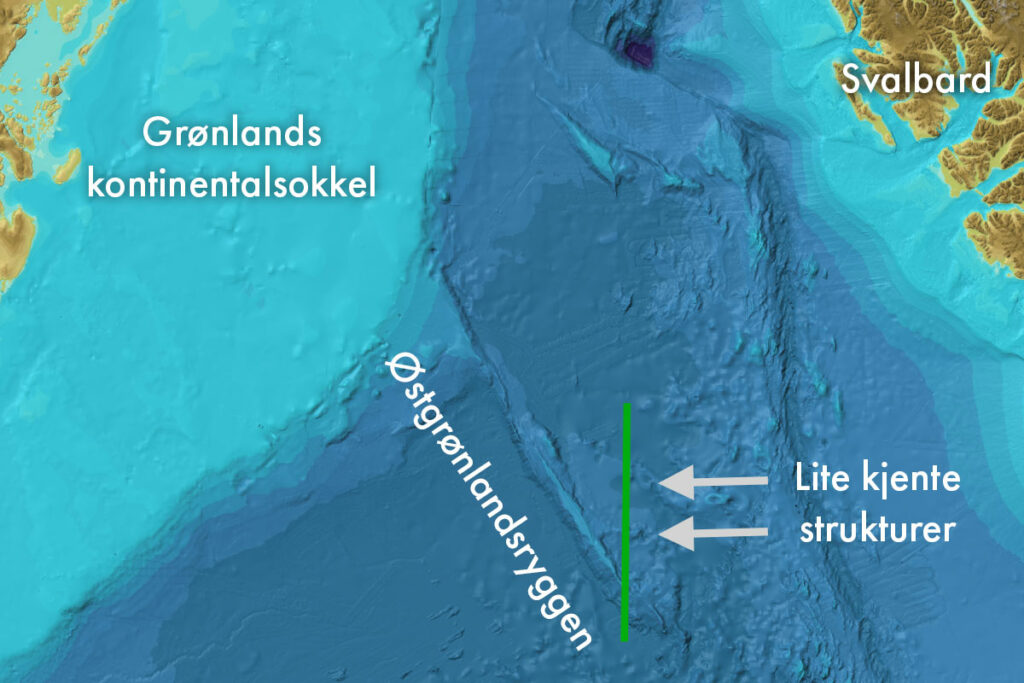 Ett av hovedmålene med dagens linje var å forstå to lite kjente strukturer nord for East Greenland Ridge. Hvordan disse formasjonene ble til, og hvor gamle de er, har vært et åpent spørsmål. Som et ekstremt eksempel kunne man tenke seg at strukturene bare er sedimenthauger avsatt av strømmer. Dette vet vi nå ikke er tilfelle: Den nye profilen viser tydelig at begge strukturene fortsetter godt ned i undergrunnen.